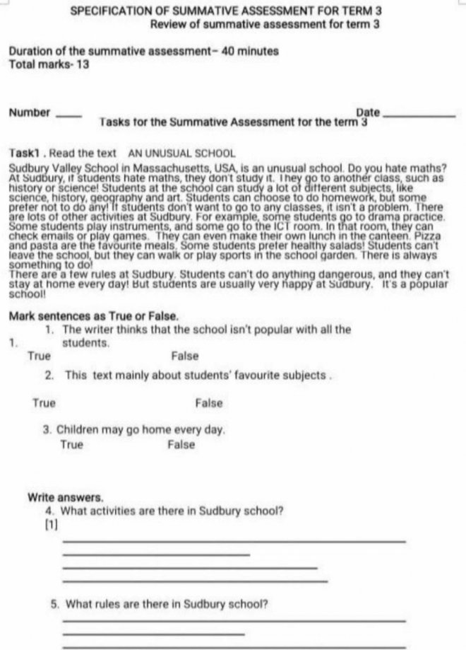 Methodological recommendations for Summative Assessment are designed to assist teachers in planning, organizing and carrying out Summative Assessment in “English language” for the Grade 6 learners. Methodological recommendations are aligned with the Subject Programme and Course plan. Summative Assessment in Grade 6 is conducted in Terms 1, 2, 3 and 4.