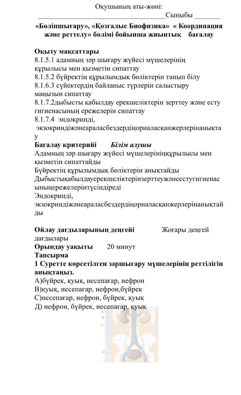 Биология (8 сынып | 1, 2, 3, 4 тоқсан)