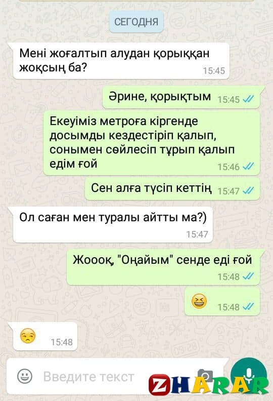 WhatsApp-тан келген әзілді ең қызықты смстер. "Сөз тапқанға қолқа жоқ" деп осындайда айтса керек. Aрнайы сіздер үшін ең қызықты 10 хабарламаны жинақталды.