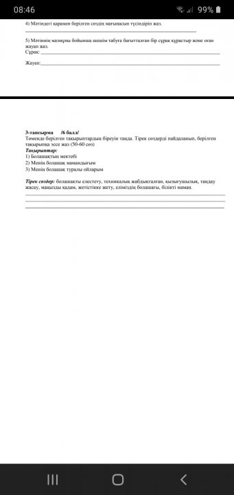 ІІІ ТОҚСАН БОЙЫНША ЖИЫНТЫҚ БАҒАЛАУҒА АРНАЛҒАН ТАПСЫРМАЛАР