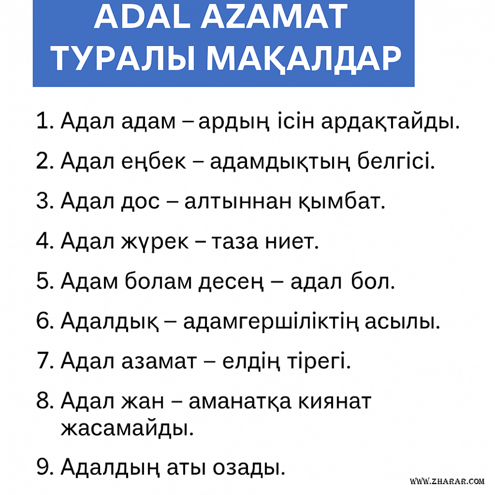 Адал азамат туралы 10 мақал мәтелдер жинағы