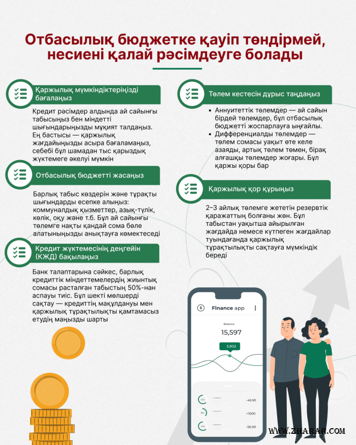Қаржылық сауаттылық қағидасына сәйкес банк мақұлдаса да, кредит сізді тапшылыққа ұшыратпауға тиіс. Ең бастысы — шынайы мүмкіндігіңізге қарай әрекет ету.