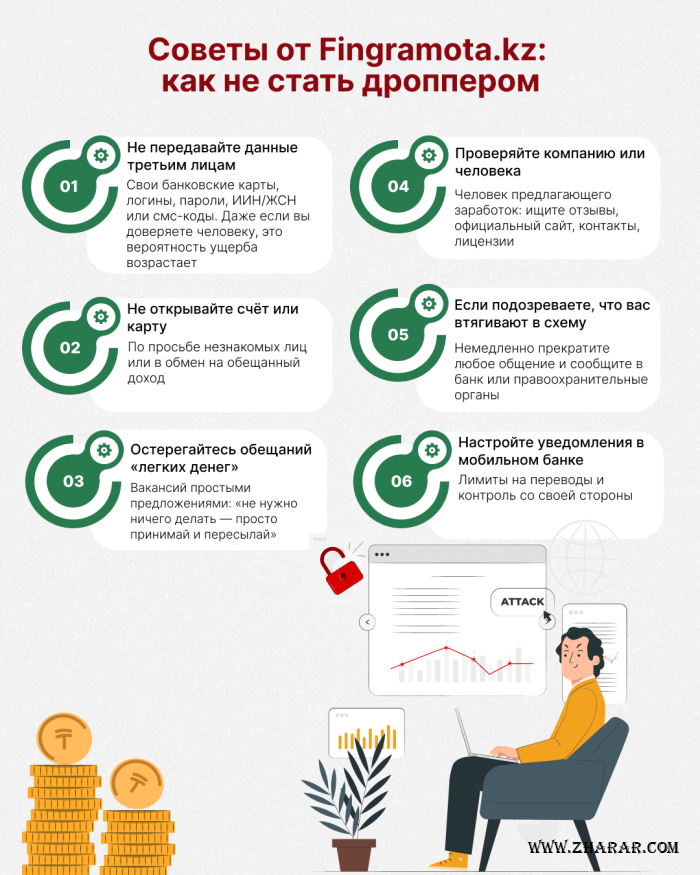 Көп адам: «Не болды, мен жаман ештеңе істеген жоқпын, тек карта/шотымды бердім ғой» деп ойлайды. Бірақ дропперліктің қауіптілігі – құқық қорғау органдары үшін сіз бірінші күдіктіге айналасыз.