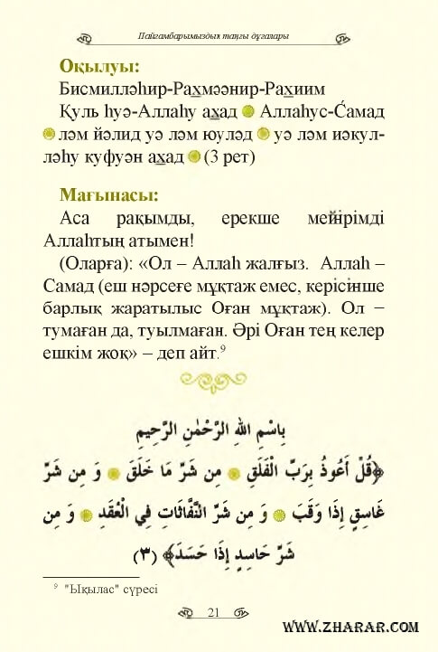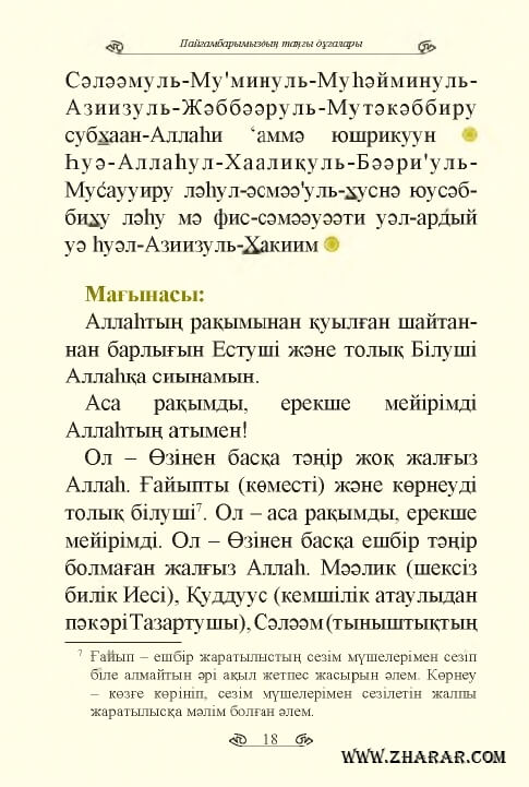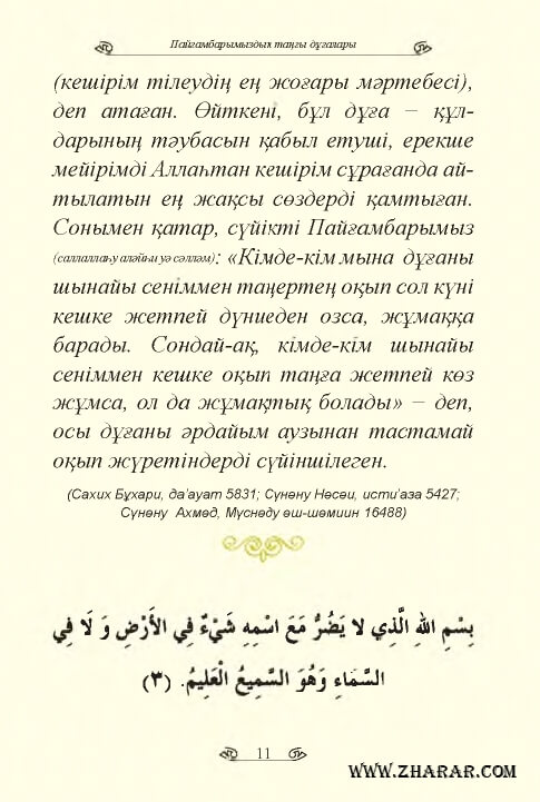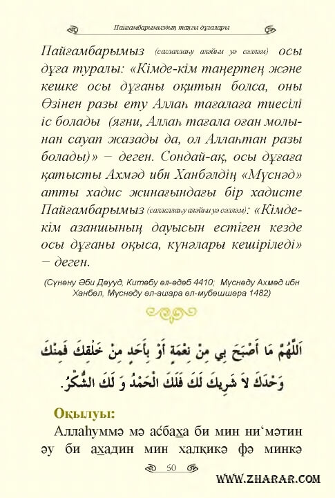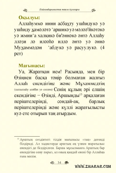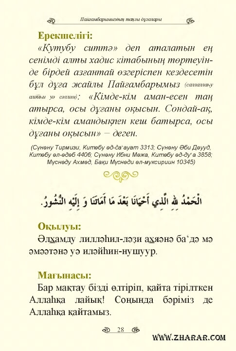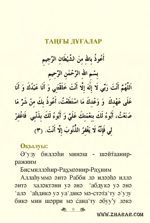 Таңғы дұғалар жинағы: Мәтіні, қазақша оқылуы және мағынасы