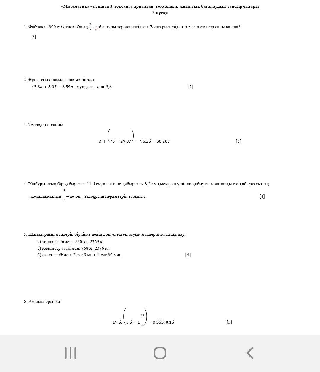 Бөлім / ортақ тақырып бойынша жиынтық бағалаудың тапсырмалары мұғалімге білім алушылардың тоқсан бойынша жоспарланған оқу мақсаттарына жету деңгейін анықтауға мүмкіндік береді.
