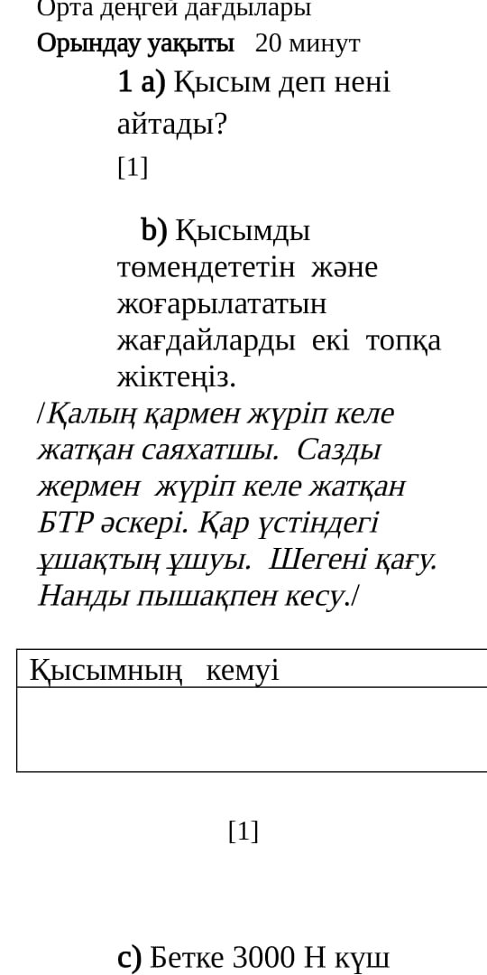 «Физикалық шамалар мен өлшеулер» бөлімі бойынша жиынтық бағалау.
