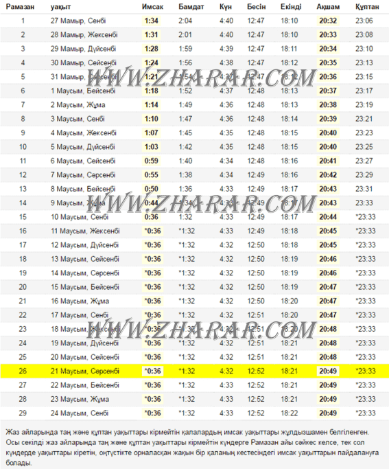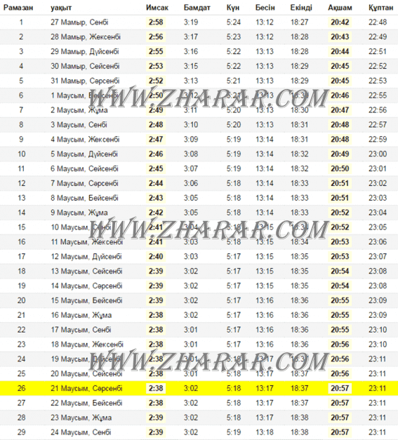 Аягоз. Месяц рамадан 2017. Расписание уразы и время намазов на 2017 г. хиджри 1438