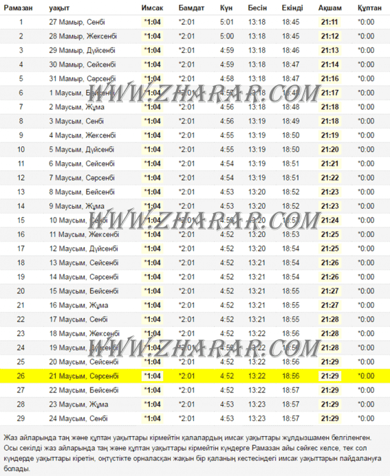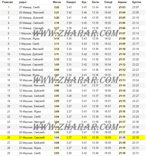 Туркистан. Месяц рамадан 2017. Расписание уразы и время намазов на 2017 г. хиджри 1438