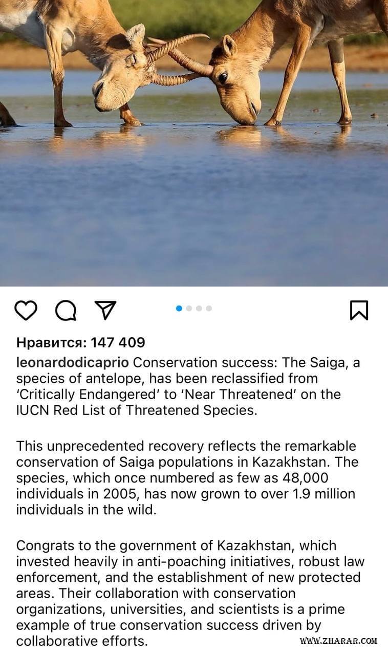 Леонардо Ди Каприо жойылып бара жатқан жануарлардың популяциясын көбейткені үшін Қазақстан үкіметін құттықтады.
